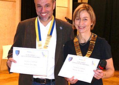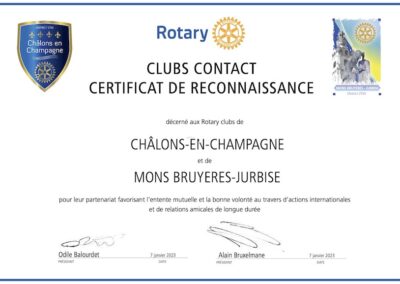 Odile Balourdet, Présidente du RC de Châlons-en-Champagne et Alain Bruxelmane, Président du RC de Mons Bruyères-Jurbise ont exprimé leur volonté de poursuivre des actions communes comme par exemple les vendanges en Champagne. Une visite du club châlonnais à Mons est prévue en mars pour mettre en place un programme commun.